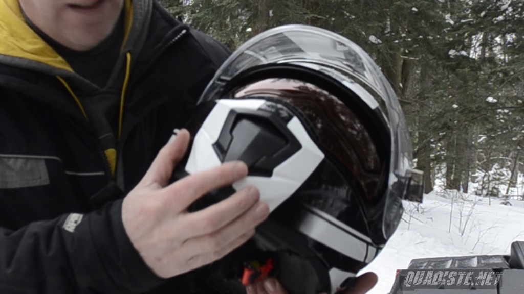C’est ici chers Quadistes que le Tranz 1.5 se distingue! Le protecteur d’haleine est en caoutchouc mince et celui-ci se moule a votre visage en quelques instants et assure un qu’un strict minimum de votre haleine soit dirigé vers la visière en évite la formation de givre et buée nuisant a la visibilité. La mentonnière elle aussi en matière caoutchoutée, fait un excellent travail et empêche l’air froid d’entrer dans la façade du casque et vous garde le menton et le bas du visage au chaud. Ces items du Tranz 1.5 valent le prix demandé pour ce casque.